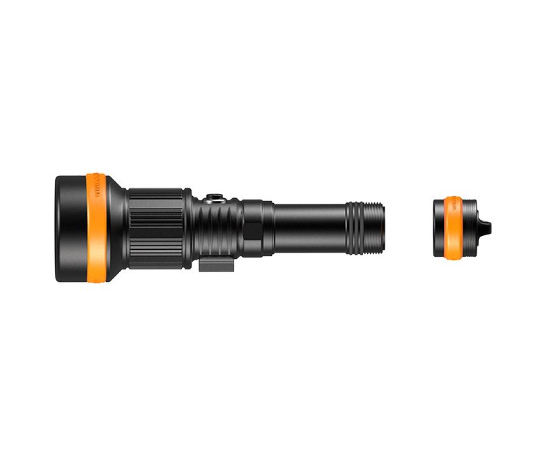 De OrcaTorch ZD710 MK2 is een veelzijdige duiklamp met een verstelbare stralingshoek, een maximale lichtsterkte van 212.500 cd en een bereik van 920 meter. De verstelbare stralingshoek (van 4° tot 72°) biedt flexibiliteit voor diverse onderwaterverlichtingsbehoeften, of het nu gaat om het verkennen van grotten, het observeren van het onderwaterleven, onderwaterfotografie, enzovoort. De ZD710 MK2 is uitgerust met een oplaadbare 5000mAh 21700 USB-C-batterij voor gemakkelijk opladen. Hij beschikt over een veiligheidsvergrendeling om onbedoelde activering te voorkomen, waardoor het een ideale duiklamp is voor diepten tot 150 meter, geschikt voor diverse onderwateromgevingen.